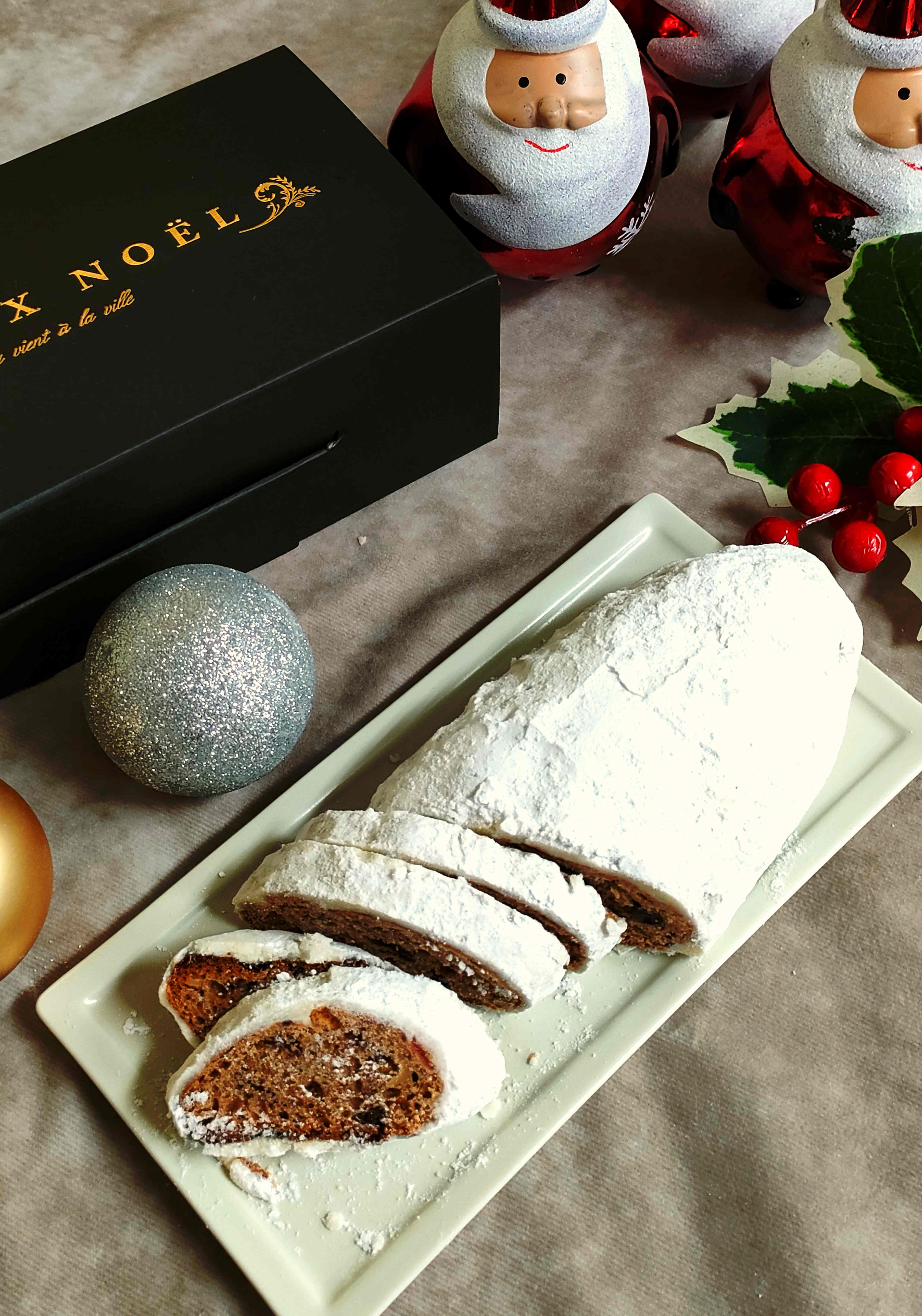 酵母の入った生地にドライフルーツやナッツ、マジパンなどを練りこんで焼き上げたドイツの伝統的なケーキです。日ごとにフルーツの風味などがパンへ移り、